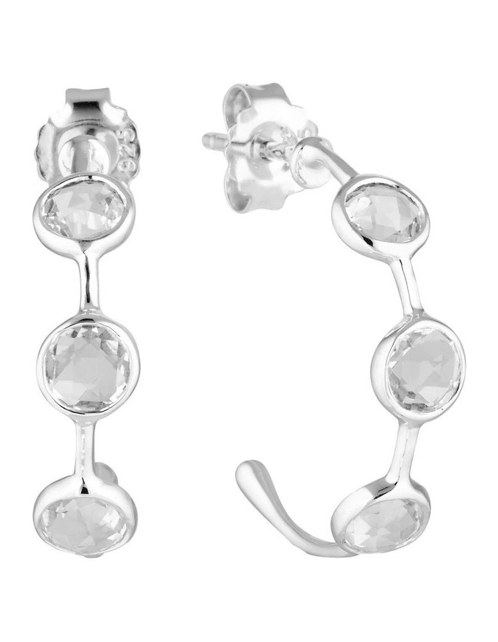 Glam up your everyday earring style with our gemstone collection hoops. Featuring a perfect mix of high shine silver and sparkling white topaz gemstones these earrings exude effortless glamour! Symbolizing hope, love and happiness these earrings tick all the boxes for feel good energy!