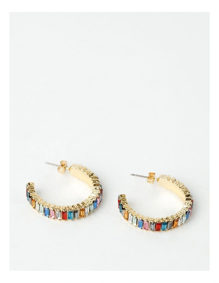 Glass pearl earring with aurore boreale (AB) effect. 10mm in diameter. Rhodium plated backing.