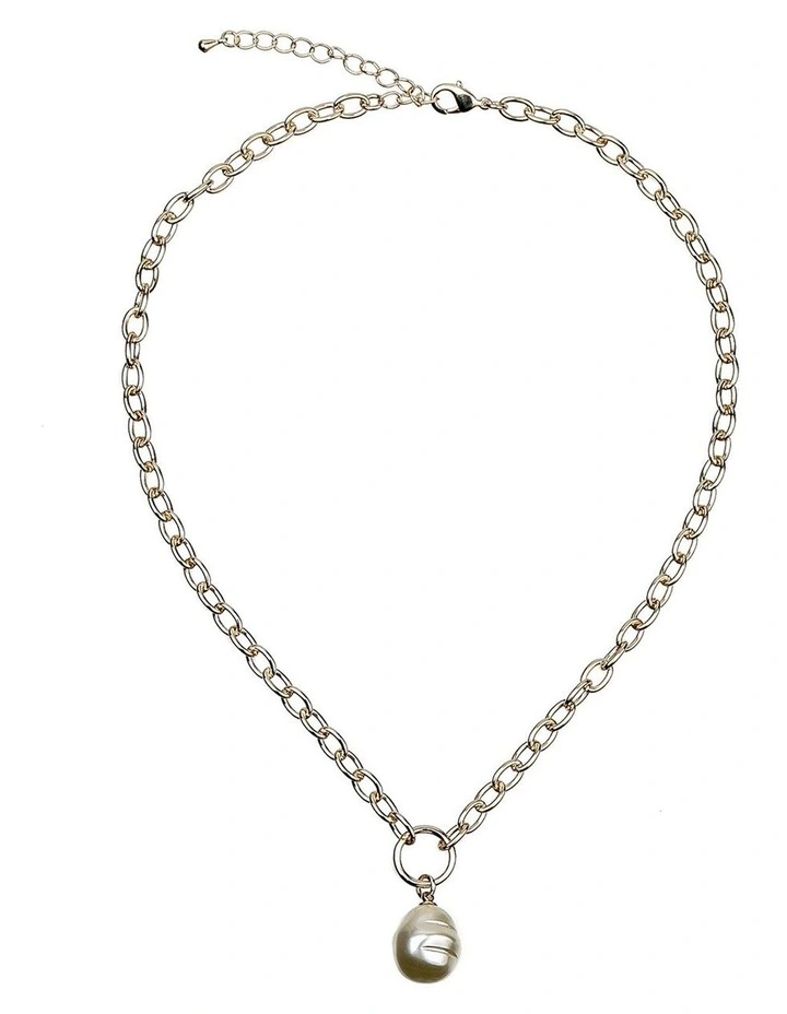 A beautiful gift box set featuring baroque style pearl earrings and a matching baroque chain pearl necklace.