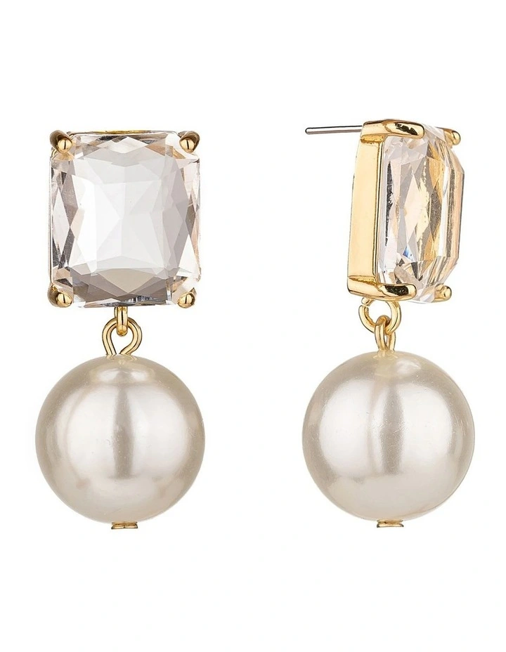 Add a touch of shimmer to your look with clear emerald cut stone earrings that feature a round faux pearl drop.