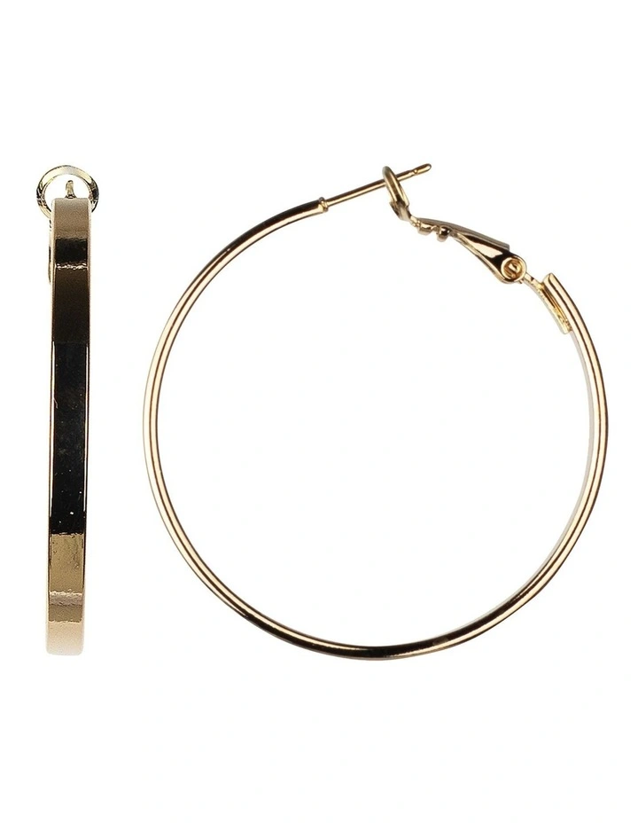 A must have if you love hoops. These large flat metal hoops are the perfect addition to any look.