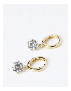 Timeless classic earrings. Featuring a small gold hoop and a stone drop pendant.Β