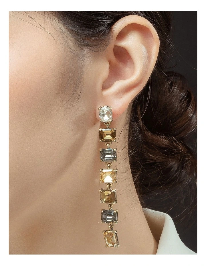 Elegant long drop square jewelled statement earrings. The perfect layering piece for your next big occasion.