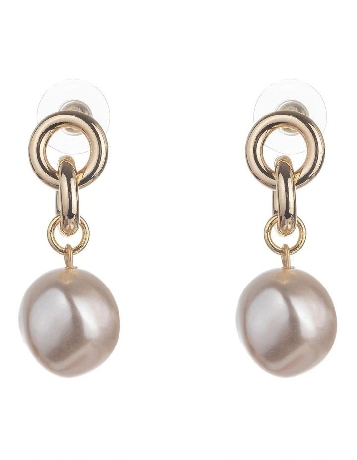 TimelessΒ classic pearl earrings.Featuring double rings with a drop faux pearl.