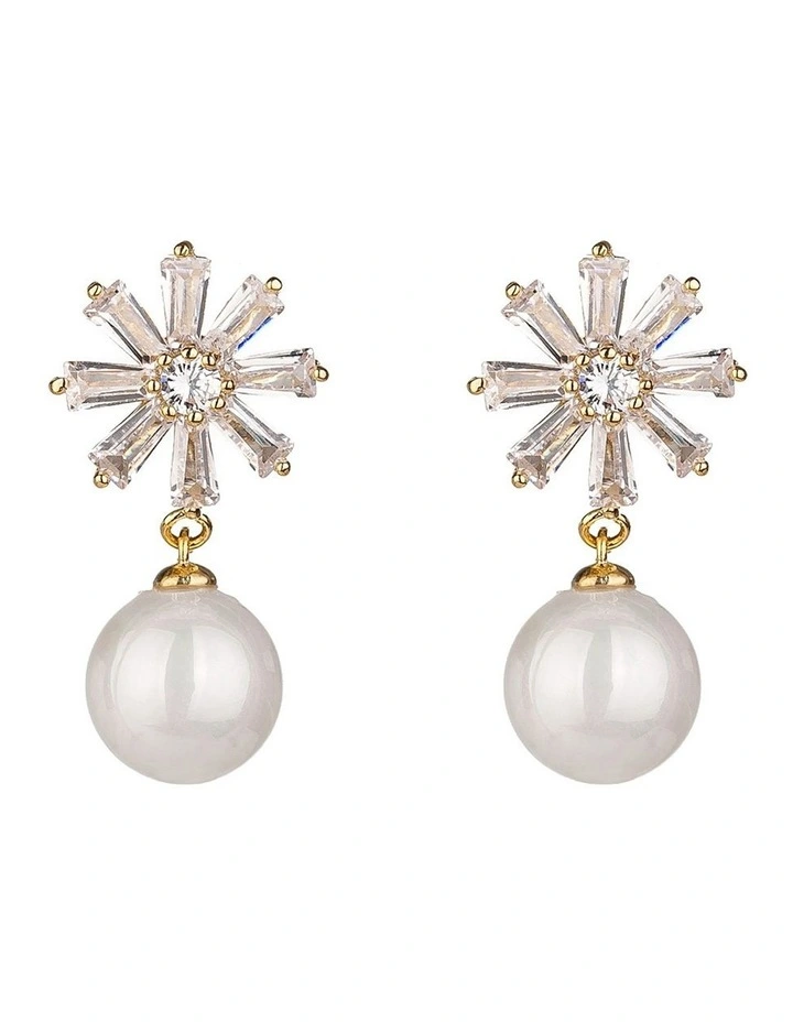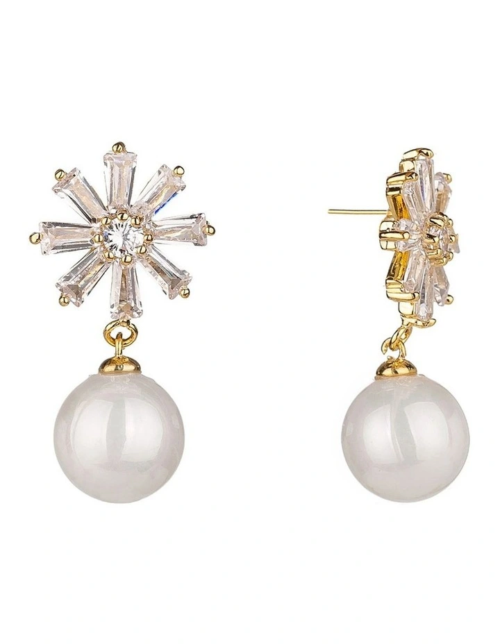 Update your look with elegant CZ starburst earrings featuring baguette CZ’s and a round pearl drop. A must have addition to your accessory wardrobe.