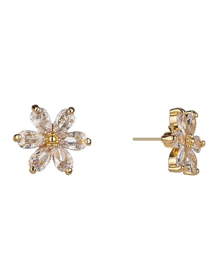 Add the perfect sparkle to your look with delicate flower stud earrings,