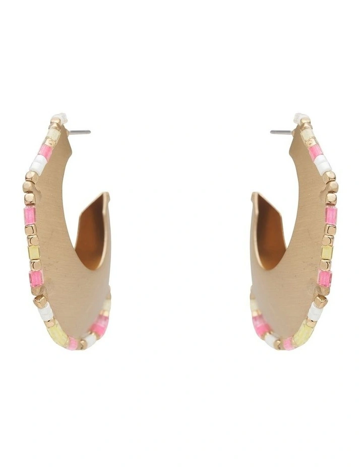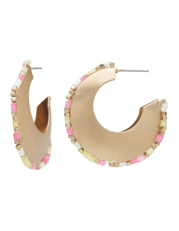Marcs captures spirited design, colour and vibrant character creating timeless classics and expressive statement pieces to add individuality and confidence to both work and weekend. Add a fun pop of colour to your spring and summer style with the gorgeous Colour Shaker Hoop Earrings, featuring bright gold-coloured plating and beaded trim in vibrant pink, white and yellow with gold-colured details.