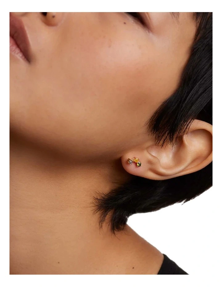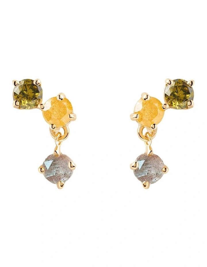 Fabrication: Material: 925 Sterling Silver Finishing: 18K Gold Plating Stones: Labradorite Yellow Iced Zirconia Green Zirconia Stones Diameter: 1.24 Mm Weight: 3 G