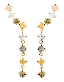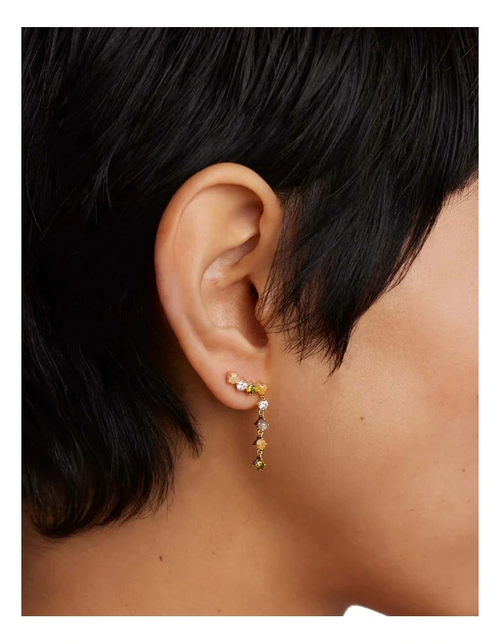 Fabrication: 925 Sterling Silver, 18K Gold Plating, Stones: Labradorite Light Green Iced Zirconia, Yellow Iced Zirconia, Green Zirconia, White Zirconia