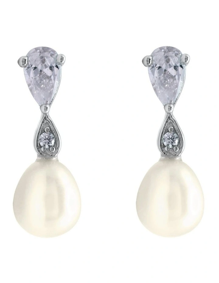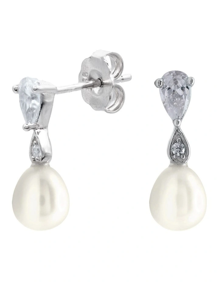 - Finely Crafted Dainty 5-5.5mm Cultured Freshwater Pearl Drops, Sterling Silver Cubic Zirconia Earrings.