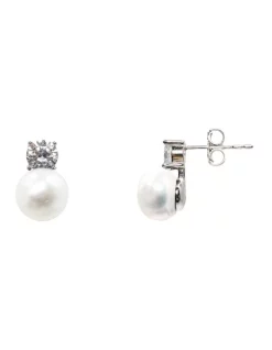 Delight in these Simply Brilliant Cubic Zirconia White Cultured Freshwater Pearl Sterling Silver Earrings presented in Gift Box. Perfect for Everyday Wear or for a Special Gift.