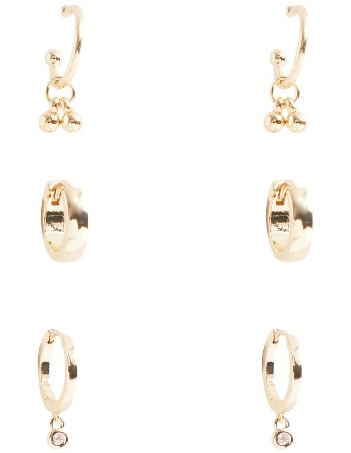 This set of three pairs of hoop earrings will see you through the season. With delicate round details, they are crafted from a gold-look metal alloy.